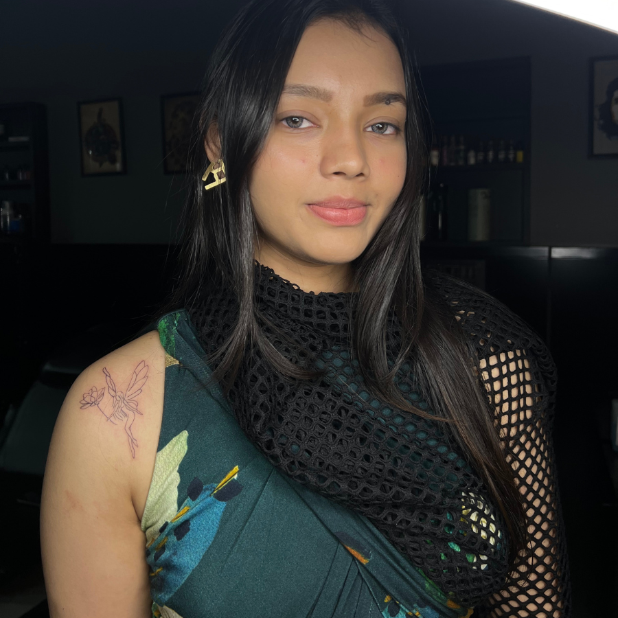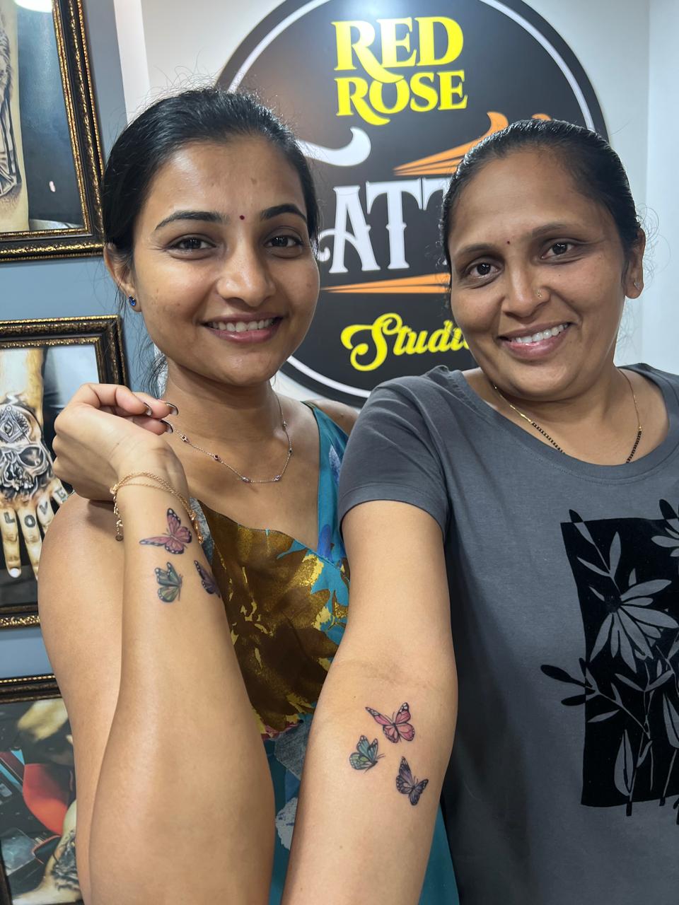 I Got my first tattoo. I was very scared then everything turns out to be good it was absolutely bearable. Rahul did a great job! Tattoo is really fantastic , Im coming again really soon for my next butterfly tattoo on my shoulder. Thanks to red rose tattoos for this wonderful experience. d =%=
