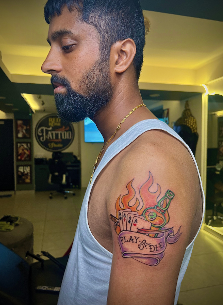 Boyz tattoo designing at Redrose Tattoo Studio offers bold, edgy, and masculine designs tailored to express your personality. Whether you’re looking for tribal tattoos, geometric patterns, animal motifs, or realistic portraits, our expert artists can bring your ideas to life with intricate detailing and precision. From large-scale sleeve tattoos to minimalistic symbols, we ensure every design resonates with your style. Using high-quality inks and maintaining strict hygiene standards, we guarantee a comfortable and professional tattooing experience. Unleash your creativity and wear your story proudly with our custom boyz tattoo designs.